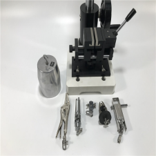 將待測紐扣固定在尺寸合適的夾鉗上,面朝擺錘。四孔紐扣漏出兩孔,兩孔紐扣露出一孔。將紐扣固定好后合上夾鉗,用隨附的螺絲刀將所有部件在碰撞儀臺面上安裝好。測試小于15mm的紐扣時將擺錘升到位置2的地方,大紐扣需要到位置1的地方。